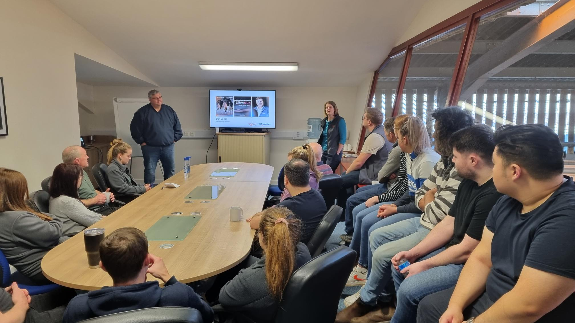 The visit unfolded within the bustling atmosphere of our staff hub, where all personnel gathered for a brew and donut. Steering the session was Dan, who led an engaging presentation illuminating current and forthcoming developments at STGenetics. Emphasis was placed on the enduring significance of EcoFeed and PrecisionDNA, setting the tone for future advancements. The ensuing discussion was marked by a vibrant exchange of questions and insights, expertly navigated by Dan. This interactive forum not only provided the team with valuable insights into the intricacies of STGenetics but also facilitated the establishment of personal connections with Dan, fostering a sense of camaraderie among colleagues.