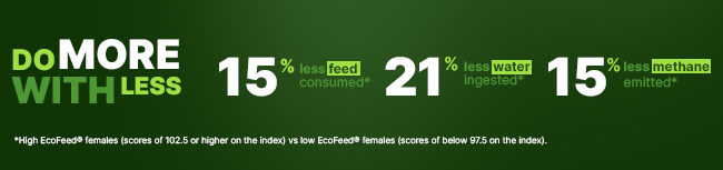 2 Source: Kebreab, E., J. R. Johnson, C. Heuer, and J. Deeb. 2021. Genetic Selection Through EcoFeed Index Reduces Carbon Footprint in Heifers. J. Anim. Sci. 99: Supplement 3: 145-145. DOI:10.1093/jas/skab235.266