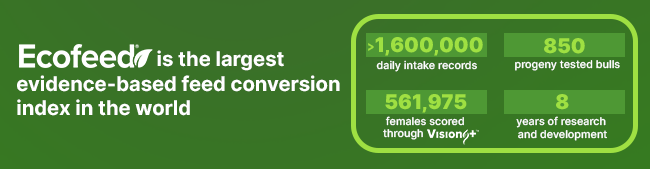 Dairy farmers around the world are committed to sustainability and are emphasising their commitment with neighbours and customers. Cogent's parent company STgenetics® understands their goal and shares that vision through its development of the EcoFeed® index. This revolutionary Feed Conversion efficiency index introduced in 2017 identifies animals who do more with less, using fewer feed resources to produce milk and meat. Recent research further highlights the ability of EcoFeed®1 progeny to more efficiently generate profits which equates to less waste and a reduced carbon footprint when compared to their herd contemporaries.