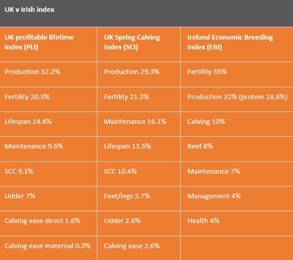 The economic breeding index (EBI), launched by the Irish Cattle Breeding Federation (ICBF) in 2001, rates cows on suitability for spring-calving, grass-based systems, with fertility weightings of 23.1% on calving interval and 10% on survival.