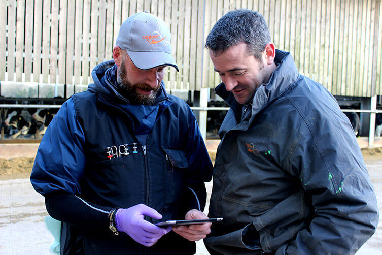 “That was simple – as soon as I took on the job, I put in these guys,” he says, gesturing towards Jeremy Dain from Cogent Precision, the service which takes on full responsibility for the fertility and reproduction management of a herd.
