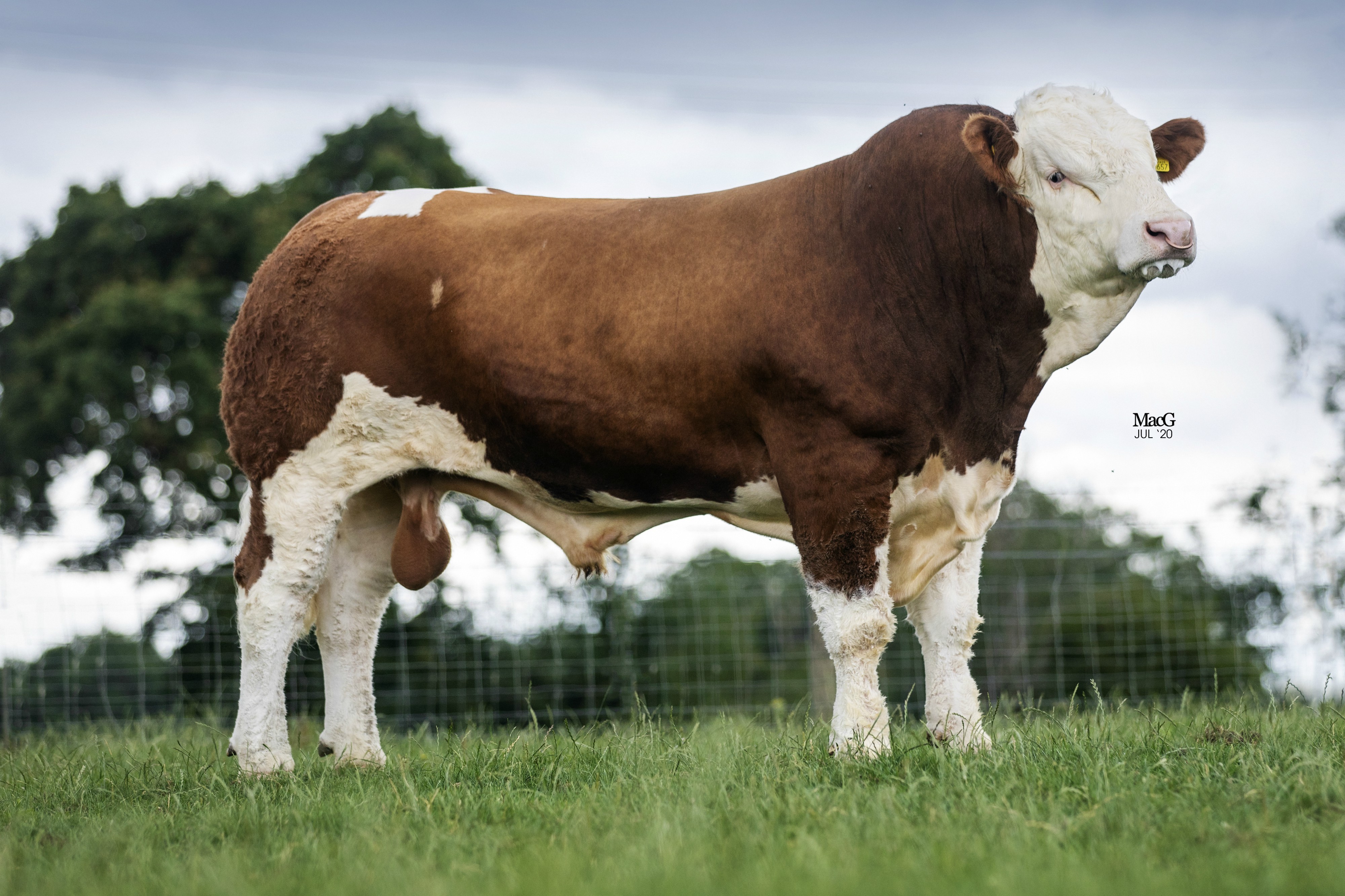 Juggernaut offers an exceptional pedigree along with outstanding phenotypic performance. His Dam 'Sacombe Dandelion Oma' needs no introduction being the 2019 Simmental National Champion 2019 and the Royal Welsh Interbreed Champion 2019. We expect this bull to provide exceptional growth and maternal traits.