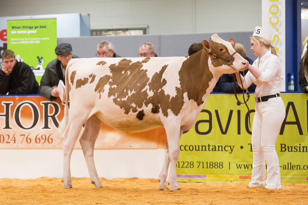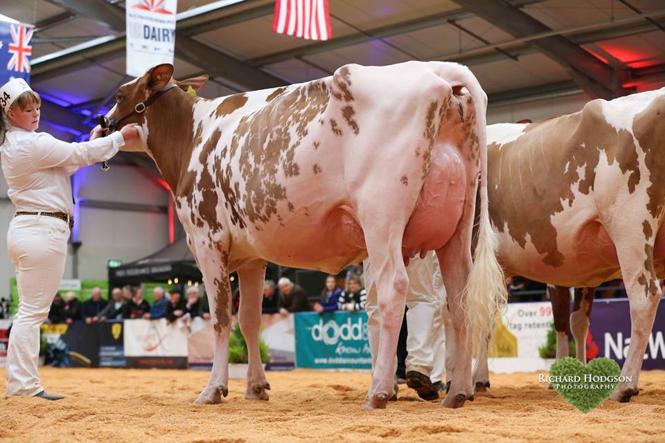 Winning the Red & White 2yo class was Panda Autumn O'Kalibra Red from Panda & Leedham Holsteins. (Sired by Luck-E Awesome Red)